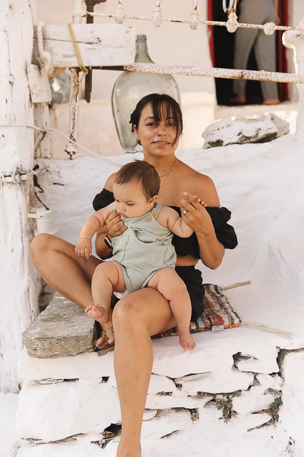 We rented chairs at Almyra Seaside Beach Bar & Restaurant. That was perfect for a Forrst because it kept him off the sand a bit, and the food was some of the best we had on the island.